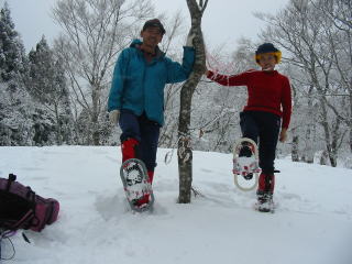 雪を拾いながら杉林を行く |