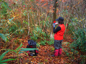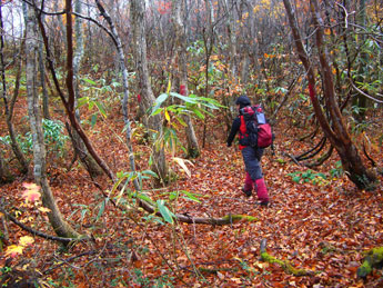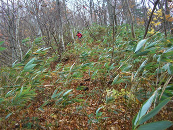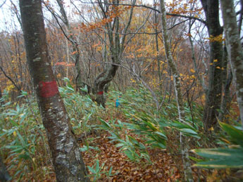 | a.m.8:45 4等三角点「楮」954・2m | 落葉していて、歩くには気持ちが良い。 |