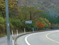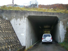 | 飛越合掌ラインの看板が目印 | 火の川原橋の手前を左折・・ | 高速のトンネルを潜る |