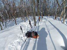 頭との分岐12:15=初雪山頂上(12:30~14:20)=1,223m15:30=大地頂上16:10=鍋倉三角点17:05=638m17:25=夢創塾(18:00~10)