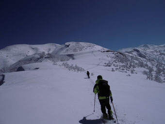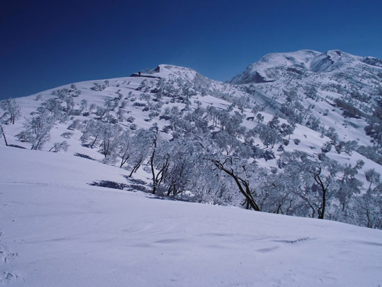 | 14:27 初雪山に別れを告げ下山開始。 | 14:33 山頂から白金ノ頭との分岐への登り返し。 |