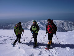 | 11:36 写真撮り追われる周さんも元気いっぱい。 | 11:38 初雪山頂は、まだ遠い。 |