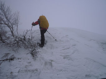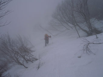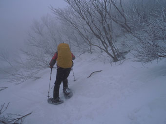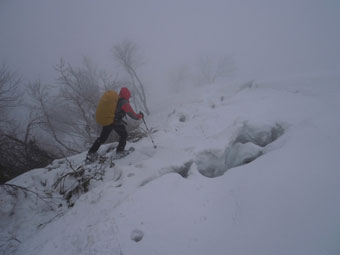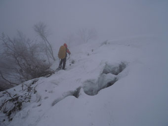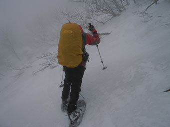 | 迂回して、上に出たら、越えられなく、 また、谷側へ降りた。 |