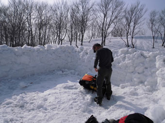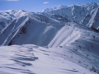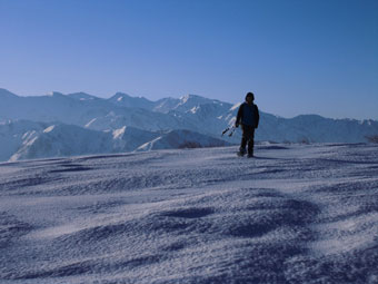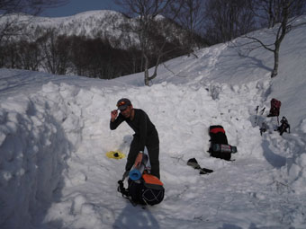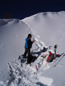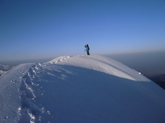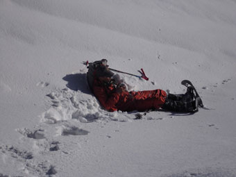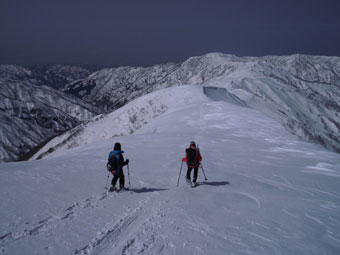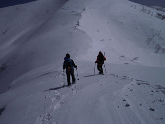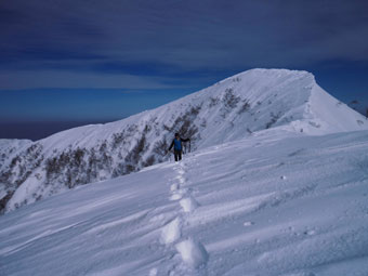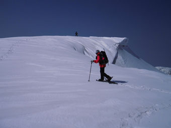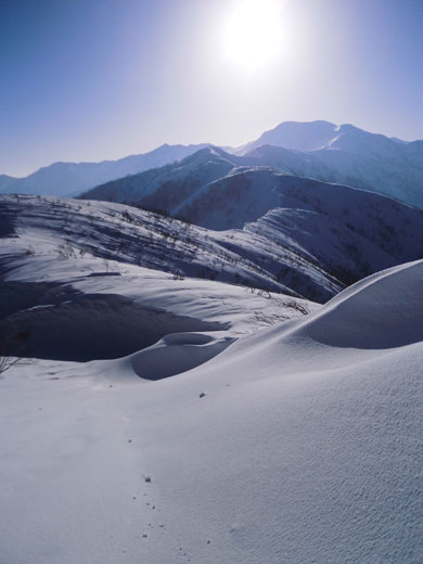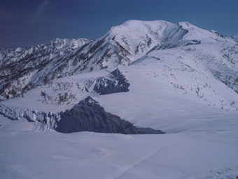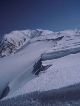 | 「初雪山はステキだ!」 | 雪庇を踏み抜くなとの助言だったが・・ |