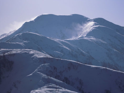 | 初雪山頂近くに雪煙が上がっていた。 |