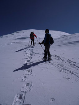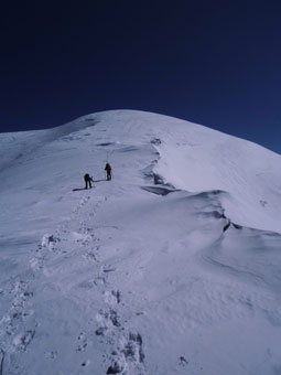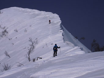 | 初雪山への核心部と言えるところ。 | 雪庇を通過して・・・ |