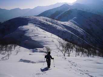 | 片斜面をトラバース気味に・・・ | 初雪山は、まだ遠い。 |