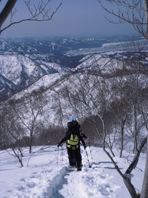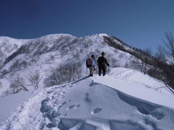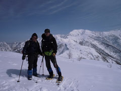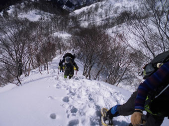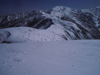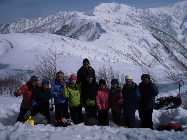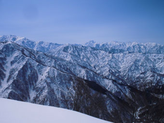 | 剱岳や毛勝の山々も望めた。 | 先を行くハレルヤの仲間達。 |