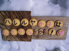 | 食事処は、ちゃんとした所に・・ | 今回は、横並びのベンチ。 | ハレルヤ女子は、あったかいだから |