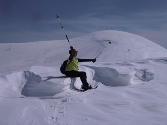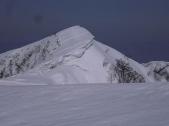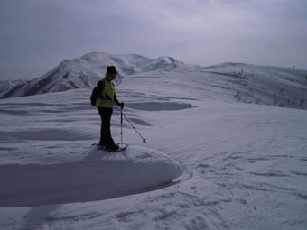 | 後方は大地、そして、1,223のピーク。 | 雪の造形を楽しんでいます。 |