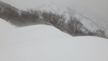 | 重荷が肩に食い込んで来る辛いところである。 | 風が強くなってきた。 |