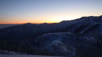 | 剱岳・毛勝の山々に陽が当たる。 | 典ちゃん お目覚め! |