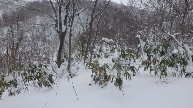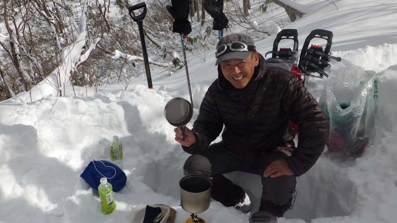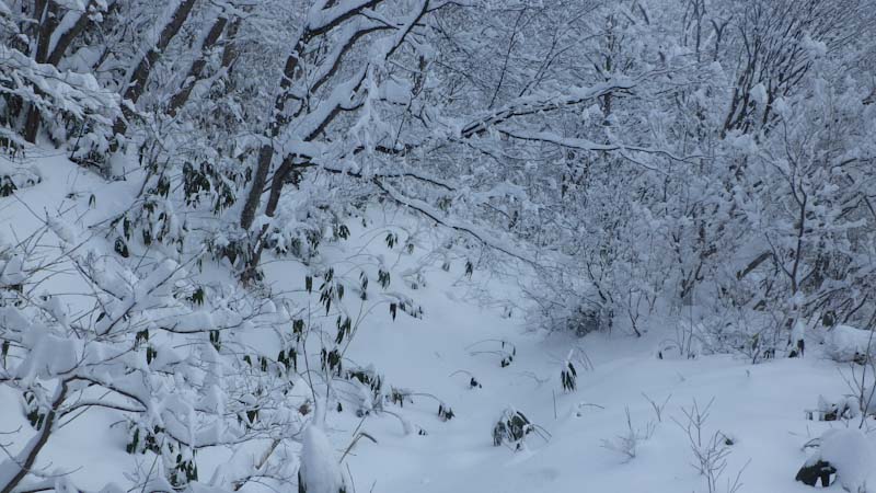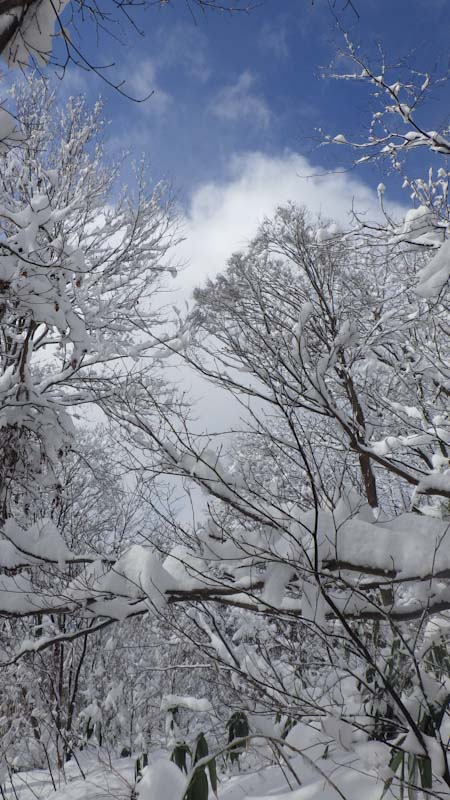 その代わり、帰りは「俺も大したもんだ!」 と思うほど高速で降りた。雪のお陰であったけれど、この雪も今週の予報からして、すぐに溶けるような気がした。実際、急斜面を降りる時、土が見え出したのだから・・・。52回目の大地は、山頂に届かず終わったが、過去にも一度鍋倉山付近で終わった事があった。それは、深雪の他に時間の制約があった時だったように記憶している。もう来週の大地キャンプは無いだろう。その後の降雪を期待するか、少雪であっても雪が固まった頃に出直すか先の事は分からない。