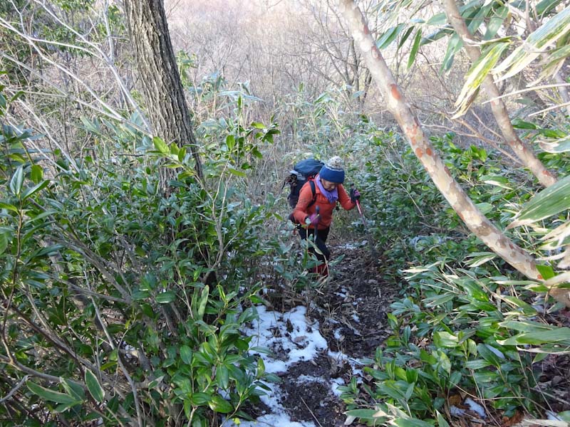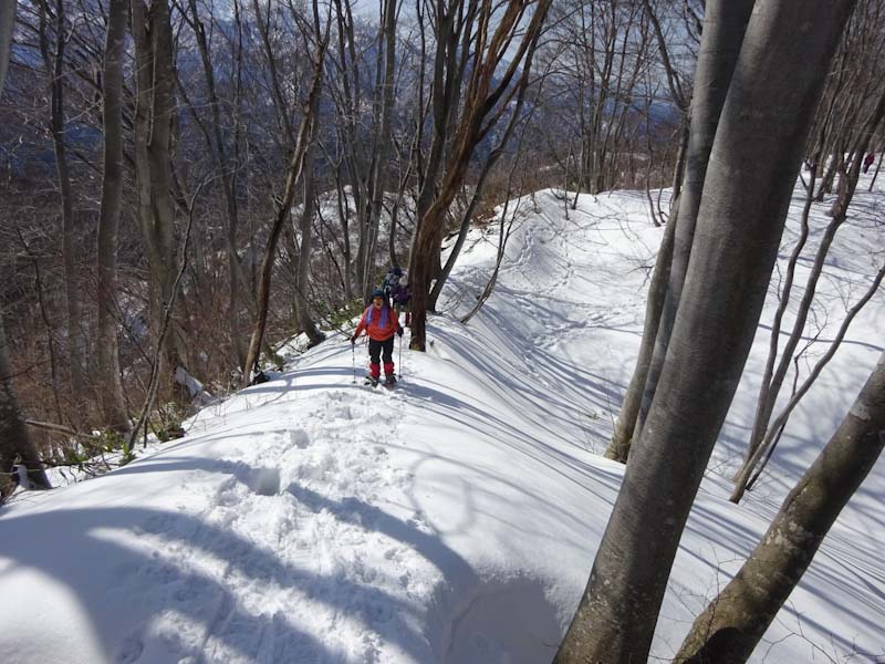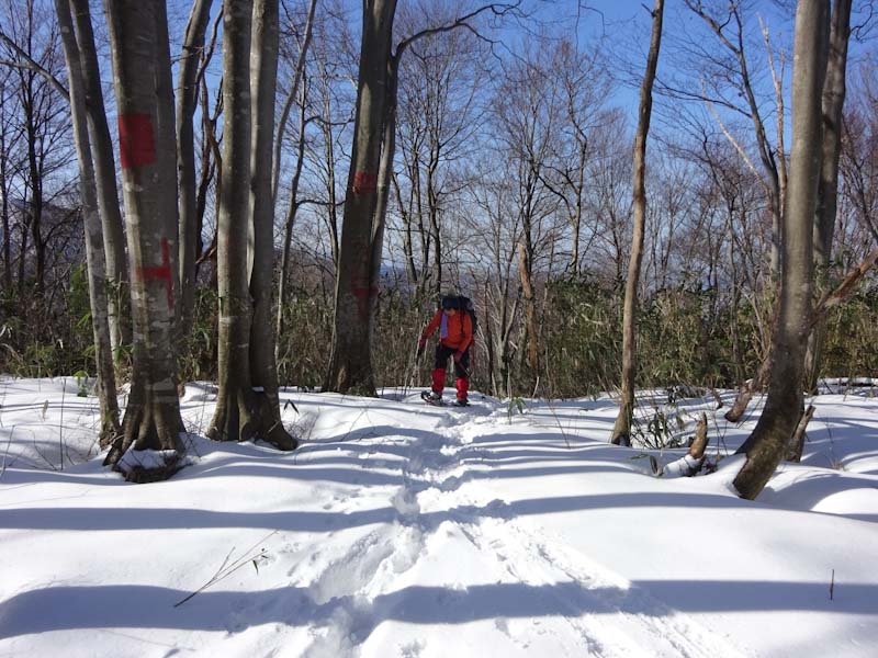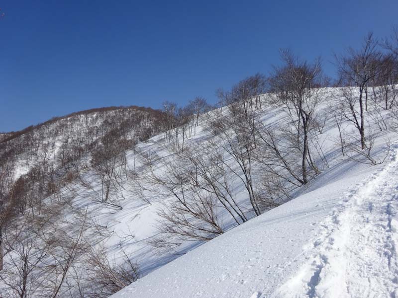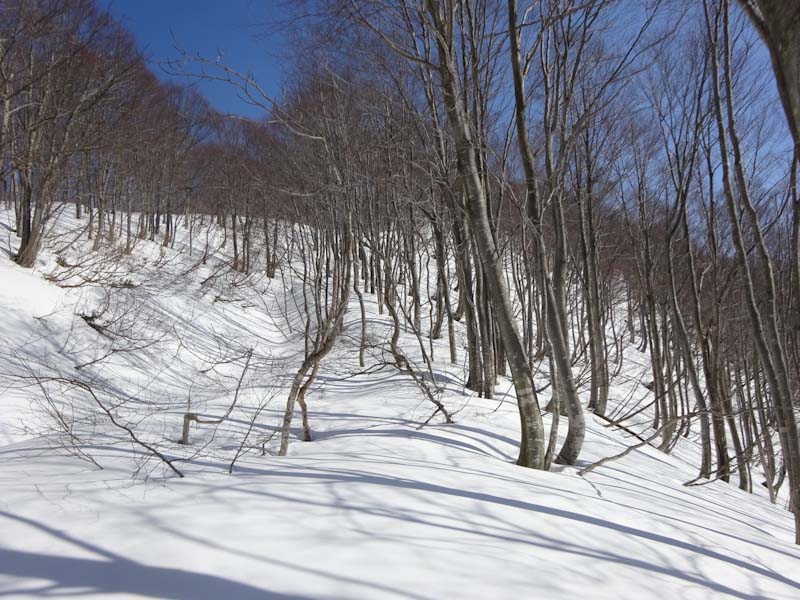 | 夏道の雪が溶けるのは時間の問題。 | ブナ林に出ました。 |