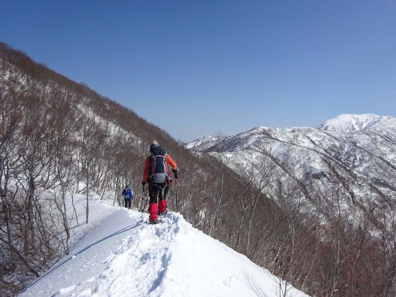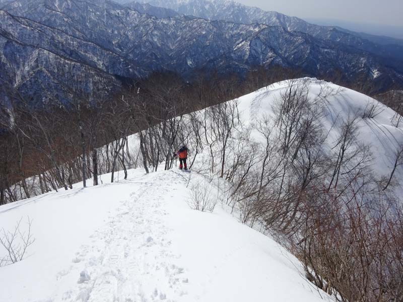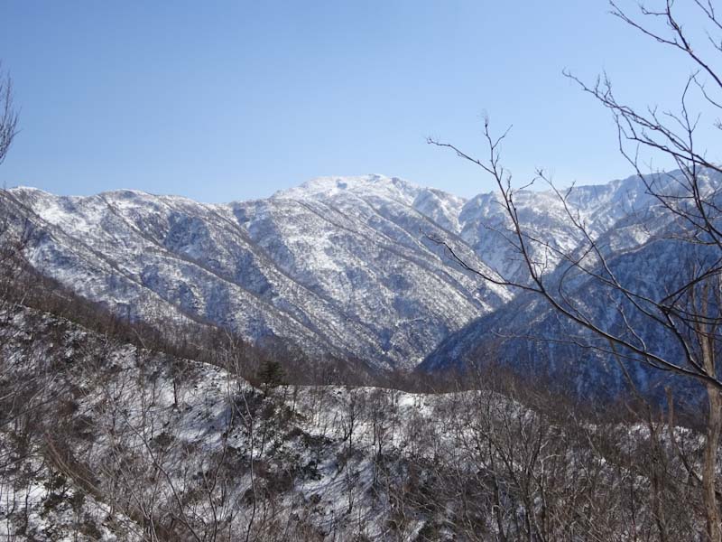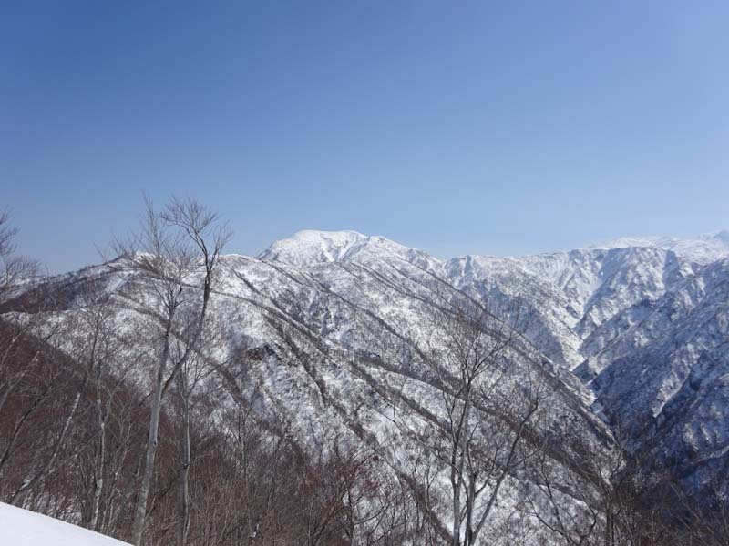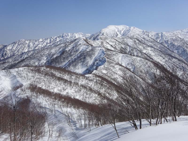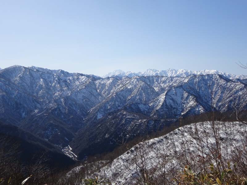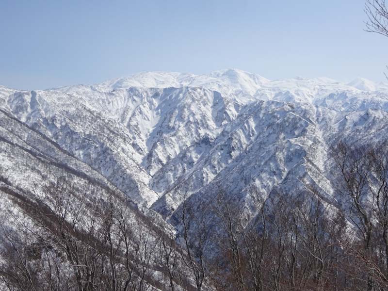 | 雪は少ないけれど、大地山から眺める初雪山が好き | 白金の頭と朝日岳方面。 |