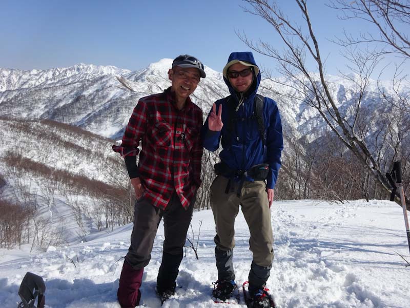 | 初雪山手前まで行って来たという竹田君と・・ | 初雪山をバックに・・・・ |