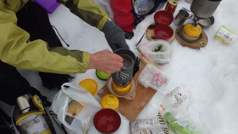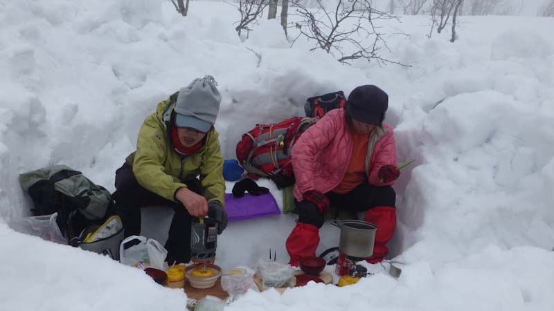 本来なら初雪山がバッチリ見える所でシェルターを造りましたが残念でした。