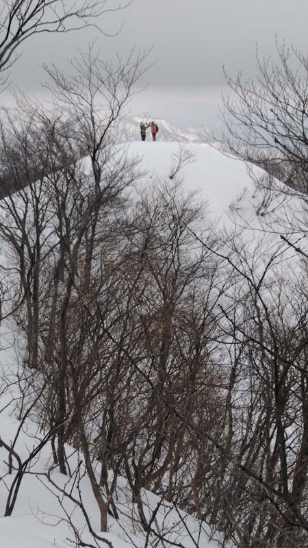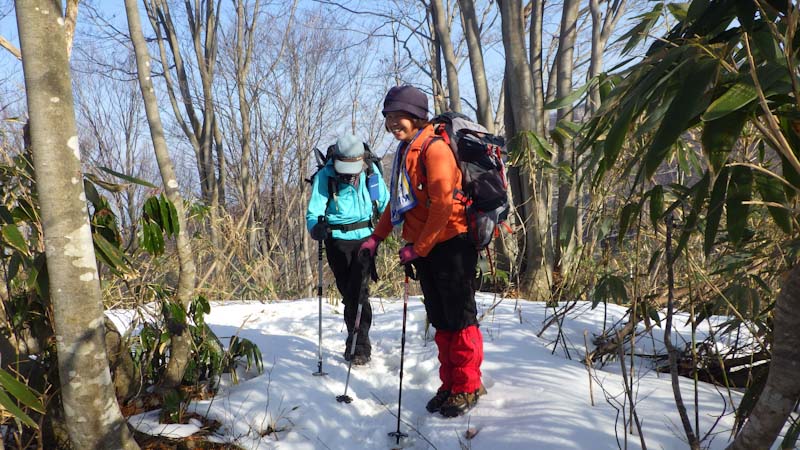 お互いにゆっくりしか歩けないと言いながら、やっぱり宮ちゃんは昔から慣らした足だけにそれなりの歩きをする。お天気もよく気持ちの良い歩きとなり、638までは予定通りの時間で登る事が出来た。一週間前よりも雪量は少なく夏道を行くしかない。それもスノーシューはいらないくらいであった。
