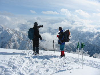 | 「北ちゃん」と青空をバックに | 「今度はあの山に登りたいね!」 「あの山は何処から取付くの?」 |
