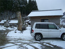 | 出遅れた夢創塾は、うっすらと雪。 |