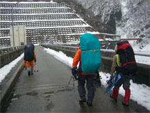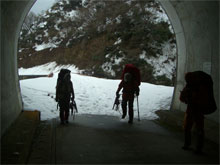 | 小川朝日ダムを渡る。 | ダムの右岸を行く。 | 相ノ又トンネルに入る。 |