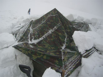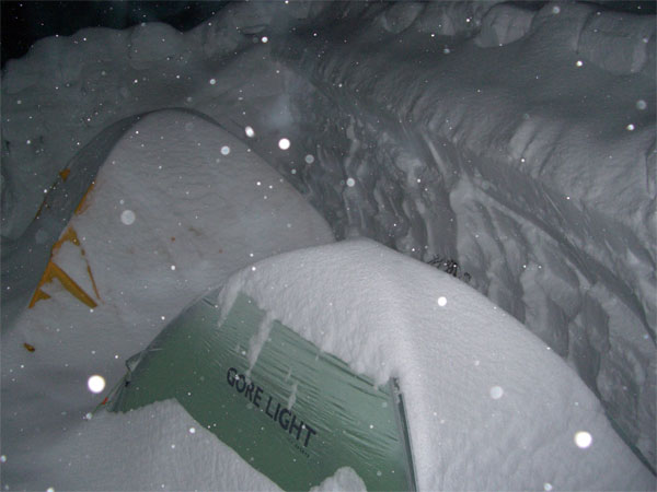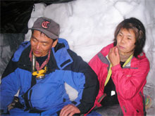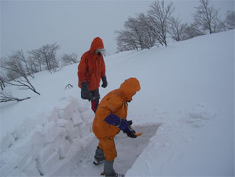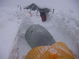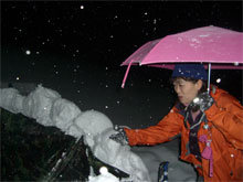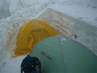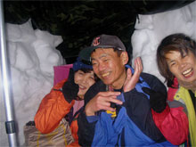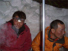 | 雪壁が気になって補修? | 山の夜は楽しい・・ | 山談義が始まる。 |