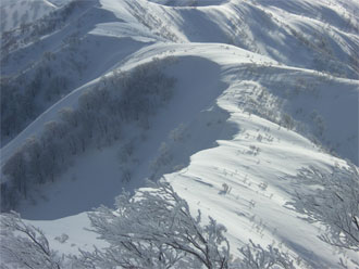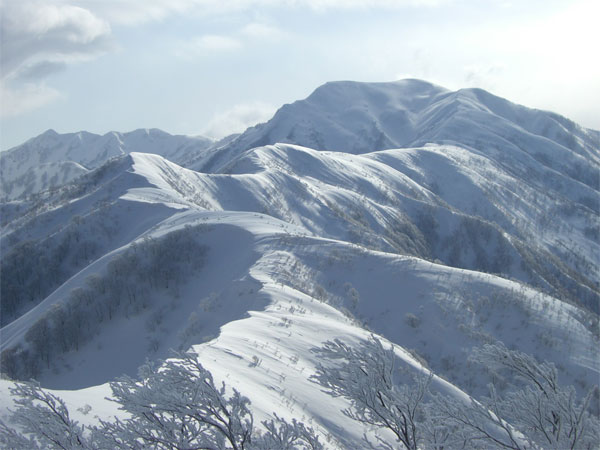 | 朝方一時的に、お天気が回復し、大地山頂から初雪山を望む。 |