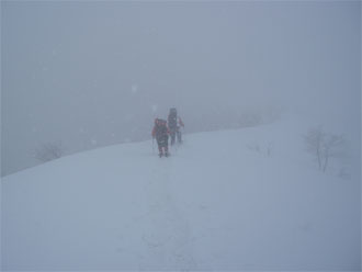 | 大地山頂で、何かをしようとしたが・・ | 雪降る中を、下山開始。 |