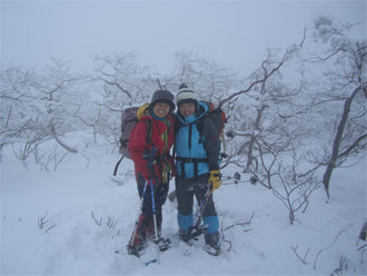 | 積雪が少なく、まるで大地の雰囲気のない山頂で・・・ |