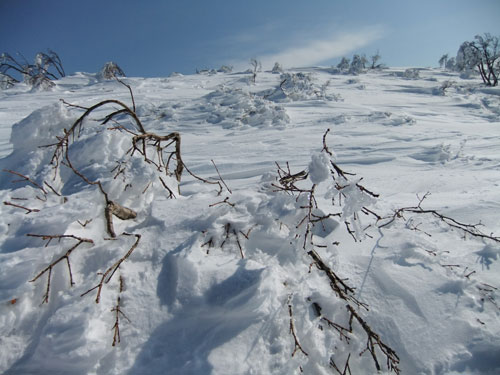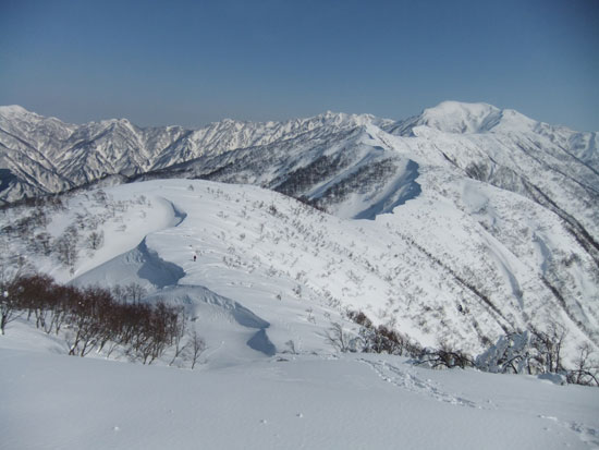 | 好天に恵まれた大地を気分良く下山に掛かる。 |