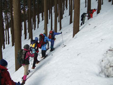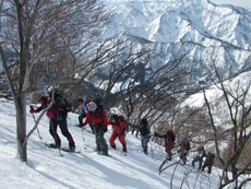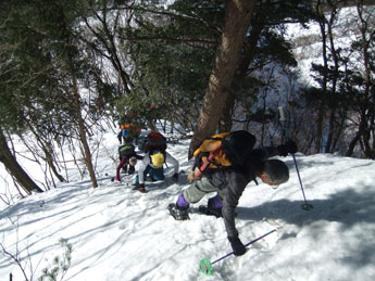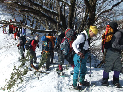 2/20 午前6時半、朝日小川ダムに集合してみると、私のように急遽参加となった方もあり、総勢15名となっていた。そして、雪が締まっていて、随分楽な歩きが出来た。