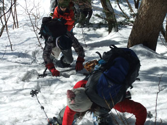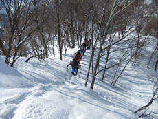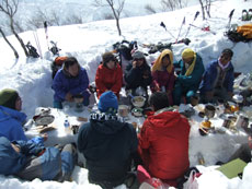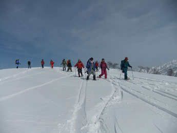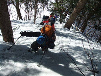 下山は、高度を落とす毎に、腐った雪との壮絶な戦い?となり、転んだり嵌ったりしながら、それでも、シリセードを楽しむ方もあり、楽しい一面を覗かせていたように思えた。