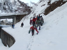 私の所では、その締まった雪上を歩く事を、「そらを渡る。」「そ~らを渡る。」 と言われているのですが、砺波地方では、「すんずら」 と聞いた事があります。他の所では、何と言われているんでしょうね・・・・