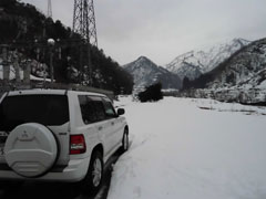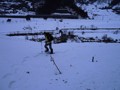 小川朝日第2発電所から夢創塾 までは、雪上の林道歩き。 |