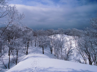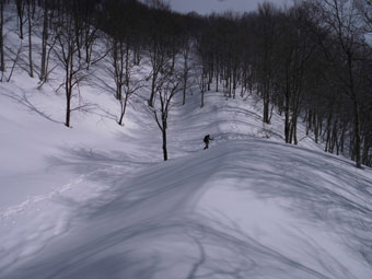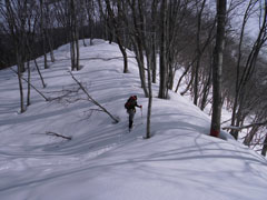 | きれいなブナ林を行く。 | 鍋倉三角点付近。 | 幾つもの起伏を越えて・・ |
