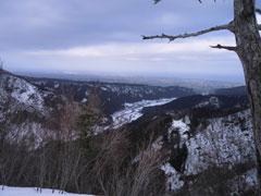 | 赤松付近から雪が現れて来た。 | 赤松から、 黒部平野・富山湾を望む。 |