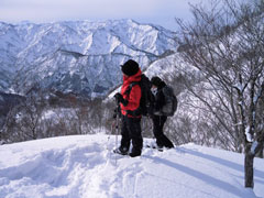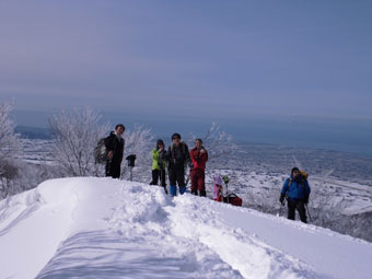 遙か彼方に初雪山。 かなり遠いと皆実感す。 |