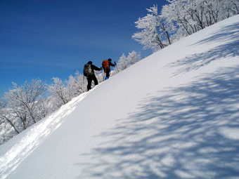 | ユキちゃんとマー君。 | もうすぐ、大地山頂に到達です。 |