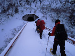 | トンネルを抜けて 急斜面に取り付きます。 |