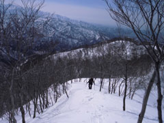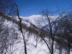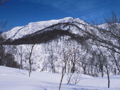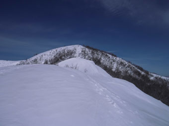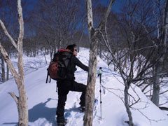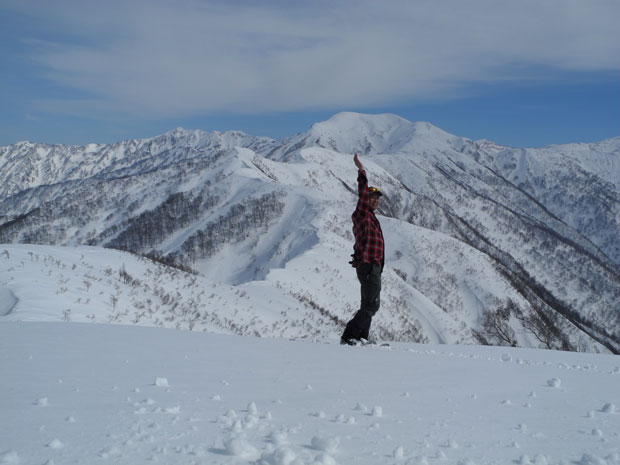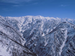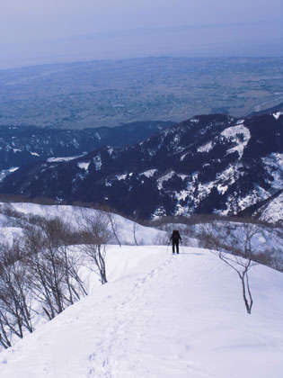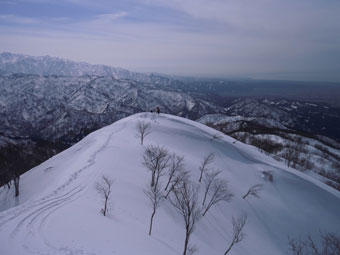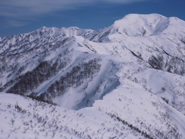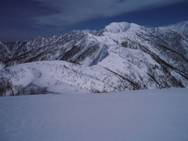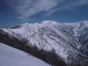 何としても山頂に達し、初雪山を拝みたい自分であるから、その歩きは軽かった。何も口にせずとも、眼前に聳える初雪山を眺めそれだけで満足であった。雪庇が発達している黒菱山への稜線も好きな所である。そして、剱岳や毛勝の山々も、すっきりと眺められたのであるが、今日だけは全く脇役になってしまった。