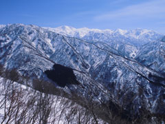 負釣山の後方に剱岳や毛勝の山々が・・ |