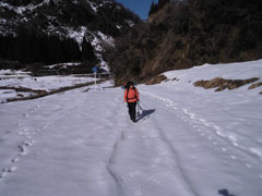 今度は、車デボ地点である朝日小川第二発電所に至る林道歩きは、朝方と違い腐った雪上を、フラフラして歩かなければならなかった。でも、今年初めてのフキノトウを、少しながら収穫しお土産となった。午後5時少し回ってしまったが、吹っ飛ばした事もあり、保育所の迎えに間に合った。