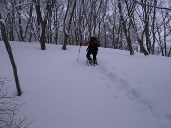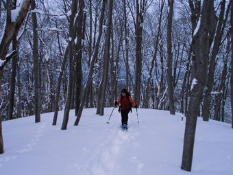 | トレースのない所を気持ちよく歩く。 | 鍋倉山から鍋倉三角点に向かう。 |