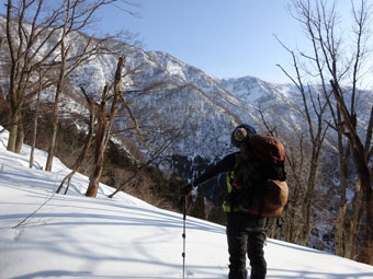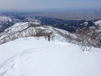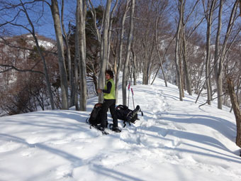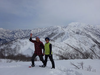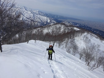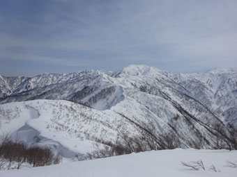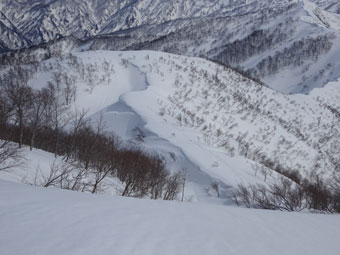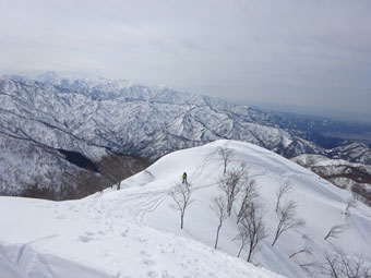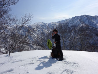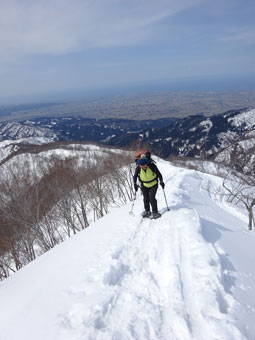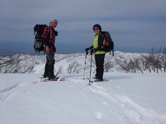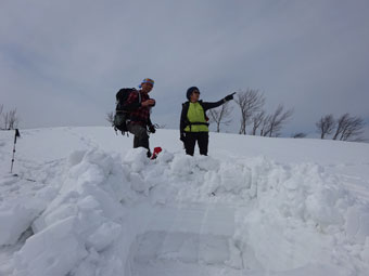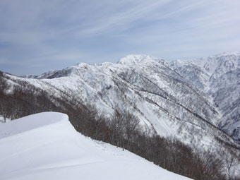 | 大地山から初雪山を望む。 | 大地山直下の雪庇を見下ろす。 |