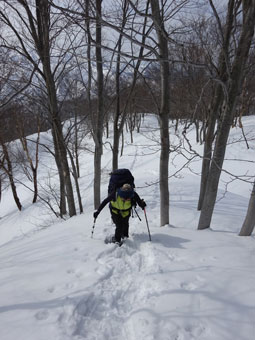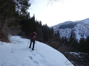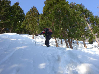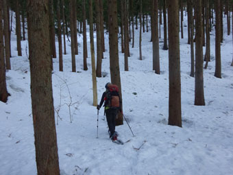 | くろべ平を通過。 | 杉林の中を行く。 |