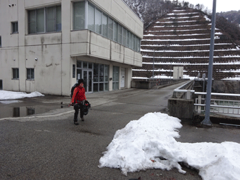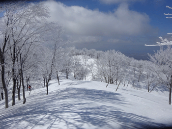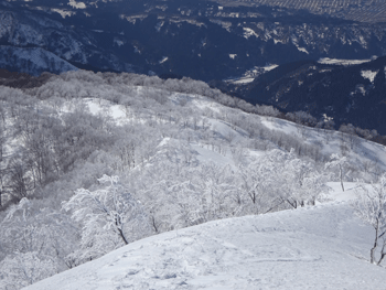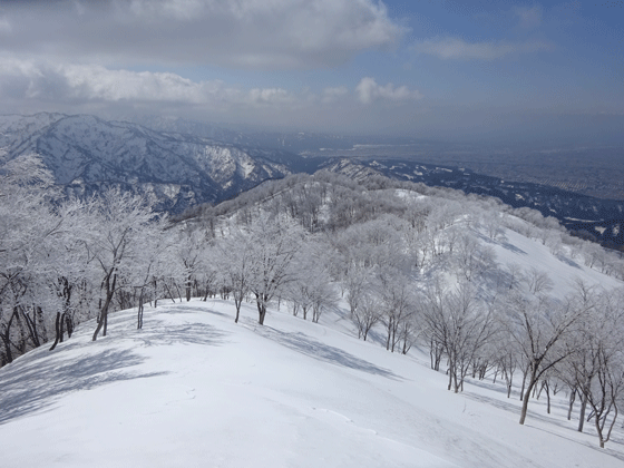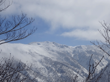 | 初雪山にガスが掛かり始めた。 | 一方、平野側は晴れている。 |