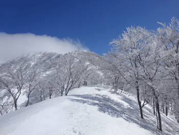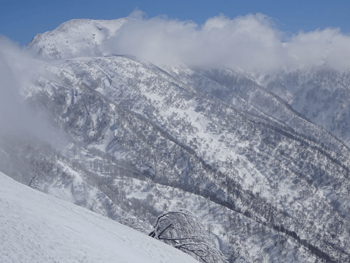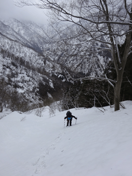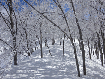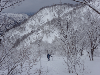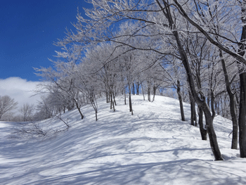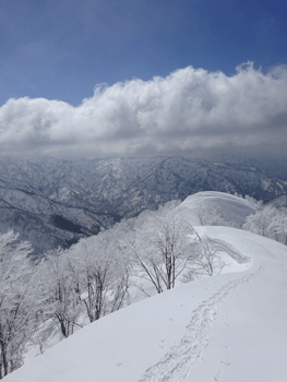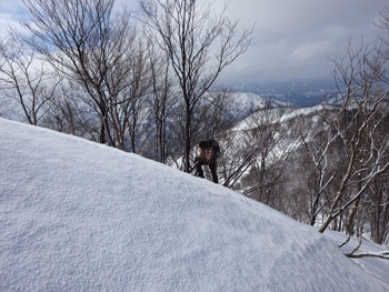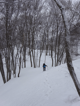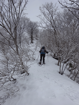 | 難所?を突破して、750mに近付く。 | 750m地点から初雪山を望む。 |