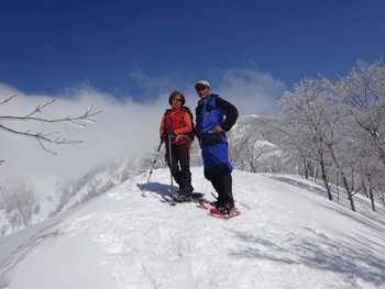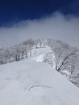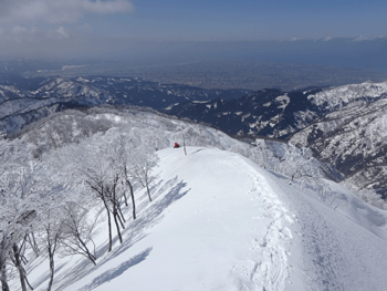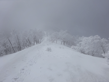 | 稜線歩きが始まった。 | 「山ノ神」苦手な狭い稜線を行く。 |