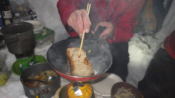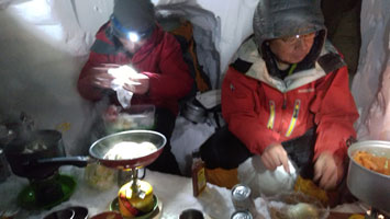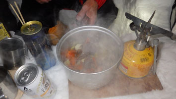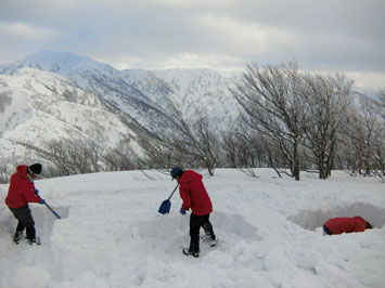 | 雪庇を避けながら・・・ | もう、8時間を経過している。 |