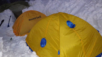 | 夜が明けて来た。 | しかし、テン場は、まだ薄暗い。 |